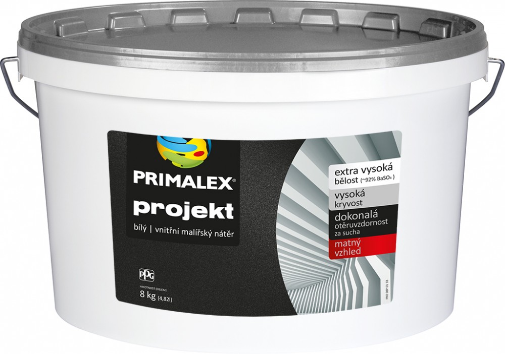 Primalex PROJEKT je náterová hmota spĺňajúca špecifické požiadavky profesionálnych maliarov, ktorí používajú len kvalitné produkty. Disponuje požadovanými hodnotami - vysokou belosťou (89% BaSO4), výbornou krycou schopnosťou a zároveň vynikajúcimi aplikačnými vlastnosťami, ktoré sú zárukou dokonalého výsledku a bezchybného vzhľadu interiéru. Súčasne vďaka veľmi dobrej paropriepustnosti ho možno použiť tiež pre nátery sanačných omietok.
