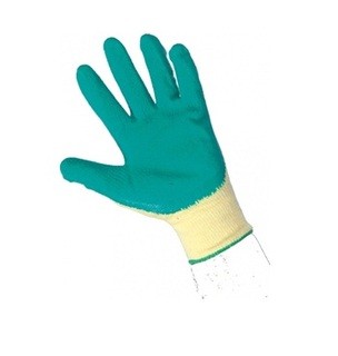 Progold Rukavice polyester / bavlna / latex, rukavice päťprstové, bezšvový úplet polyester / bavlna, dlaň a prsty máčané v latexe, zvrásnený povrch.