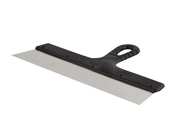 Nerezová fasádná špachtľa určený na nanášanie sadrových omietok so širokou čepeľou vyrobenou z nehrdzavejúcej ocele s pohodlnou plastovou rukoväťou.